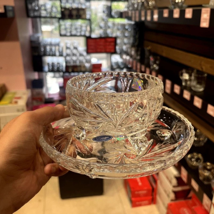 ابعاد: قطر دهنه پیاله 10cm – ارتفاع پیاله 6cm قطر دهنه پیش دستی 17cm – ارتفاع پیاله 3cm