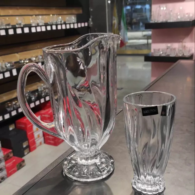 ابعاد پارچ: قطر دهنه 12cm – ارتفاع 24cm ابعاد لیوان: قطر دهنه 7.5cm – ارتفاع 14cm