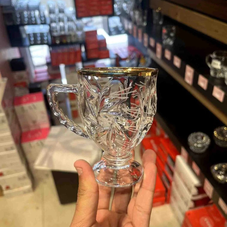 فنجان چای خوری پایه دار خورشیدی دور طلا